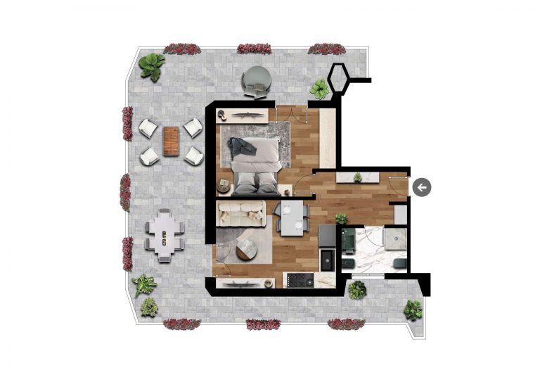 – In ultimo, ma non per importanza, una terrazza di ben mq. 40 DA FAR INVIDIA a chiunque, dove potrai goderti i tuoi momenti di relax, di convivialità con tutte le persone a te care, avere un animale domestico e un’area esterna da riempire come lo desideri (vasi, piante, fiori, pergola ecc…)