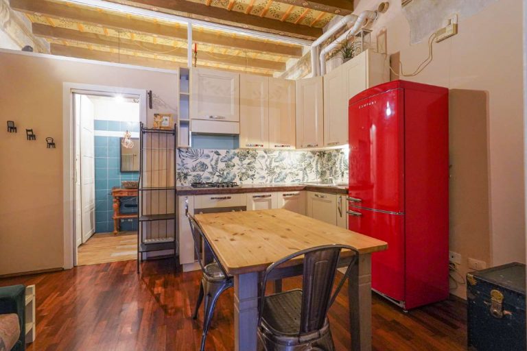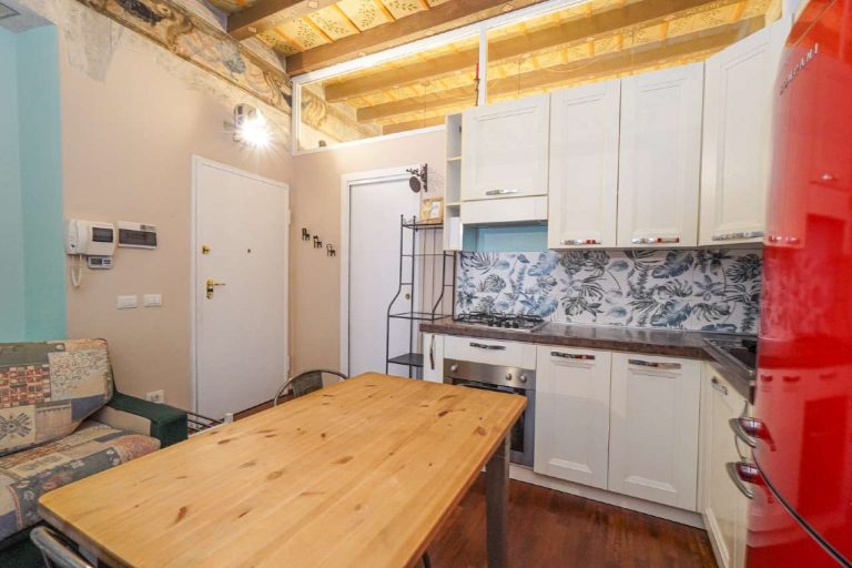 L’immobile è composto da una accogliente zona giorno con angolo cottura, a cui è collegata un’ampia camera matrimoniale caratteristica, con accogliente camino ed elementi di arredo e finiture che ti immergeranno in un’altra epoca storica.