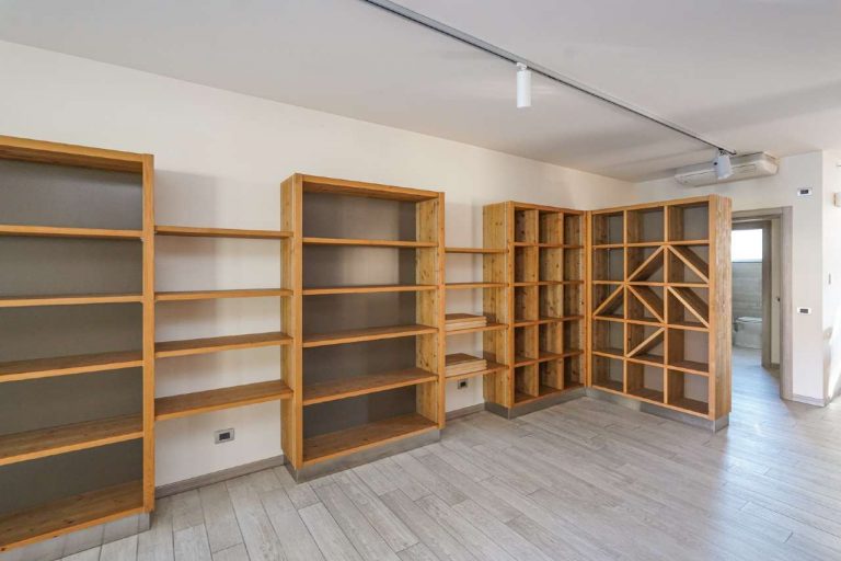 Oltre alla parete delle vetrine dove il cliente accede, sul lato opposto è presente un’altra porta d’ingresso dal cortile esterno dove è presente un posto auto esclusivo.