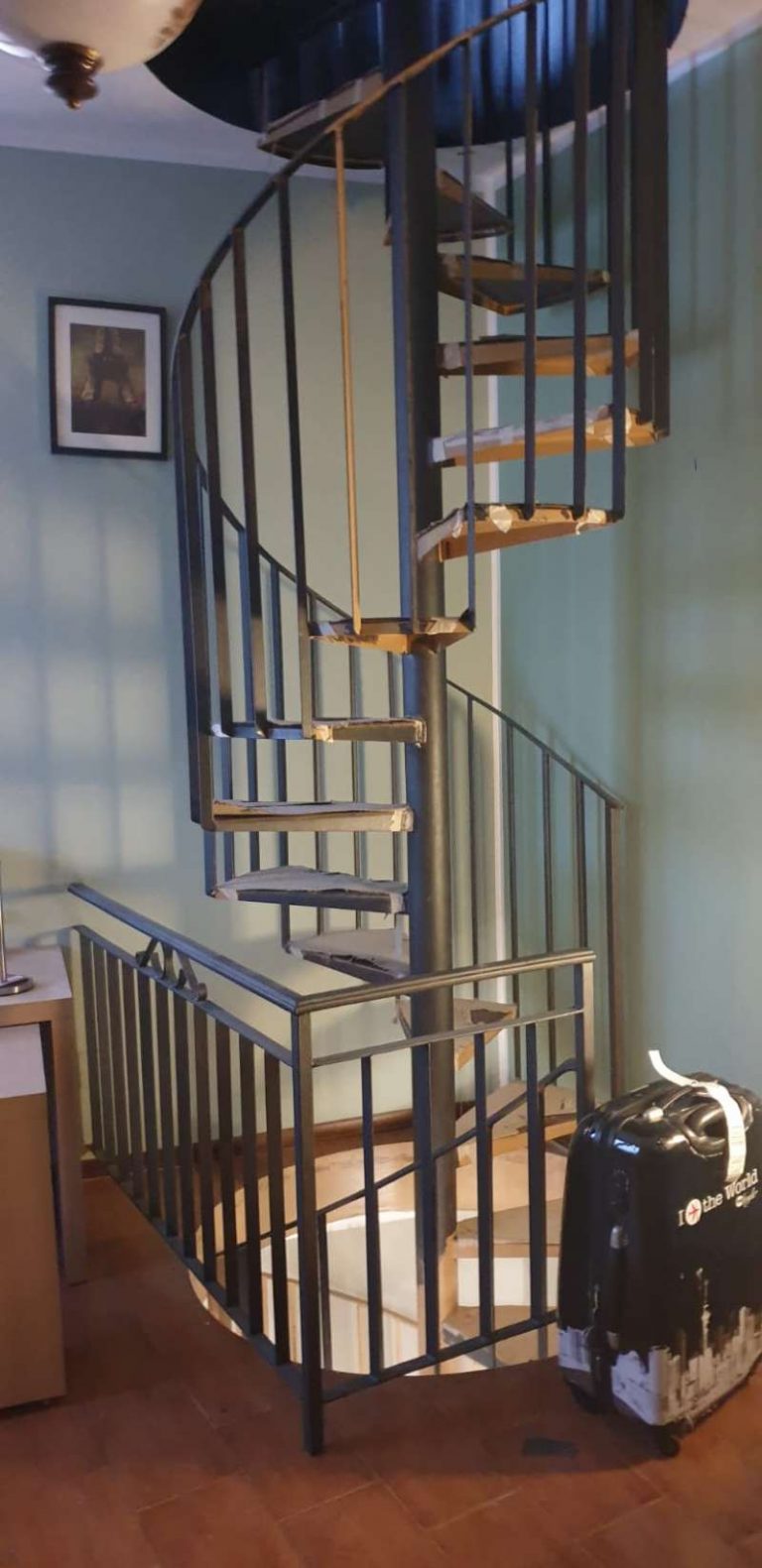 Da qui, una scala a chiocciola in ferro battuto conduce alla zona giorno.