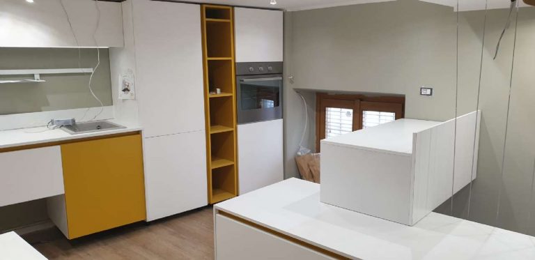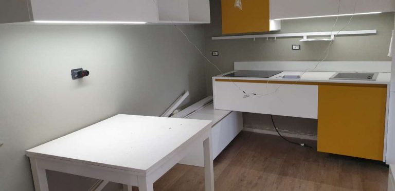 Salendo di pochi gradini si accede a una cucina abitabile nuova, mai utilizzata, comoda e ben disposta, pensata per un utilizzo pratico e moderno.