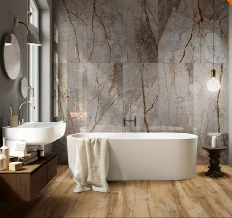 Pochi gradini portano a uno spazio separato dove il proprietario aveva previsto la realizzazione di una piccola spa domestica: un’area riservata al benessere e al relax.