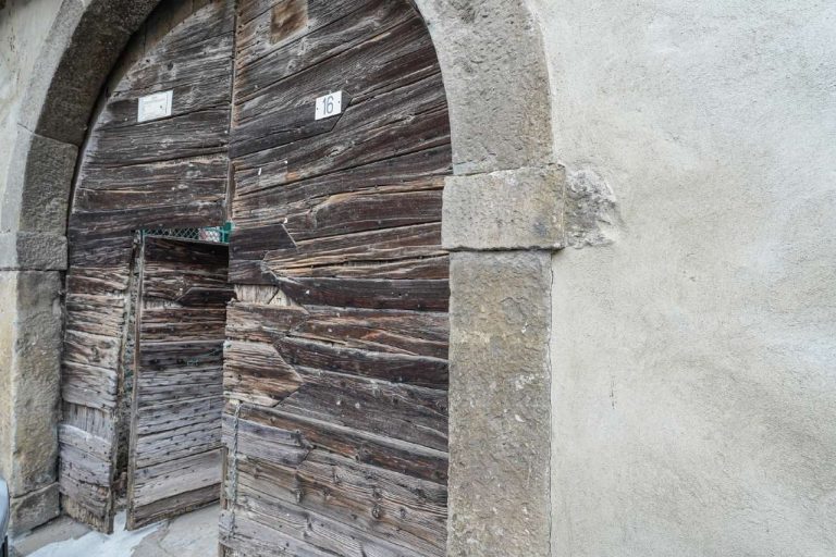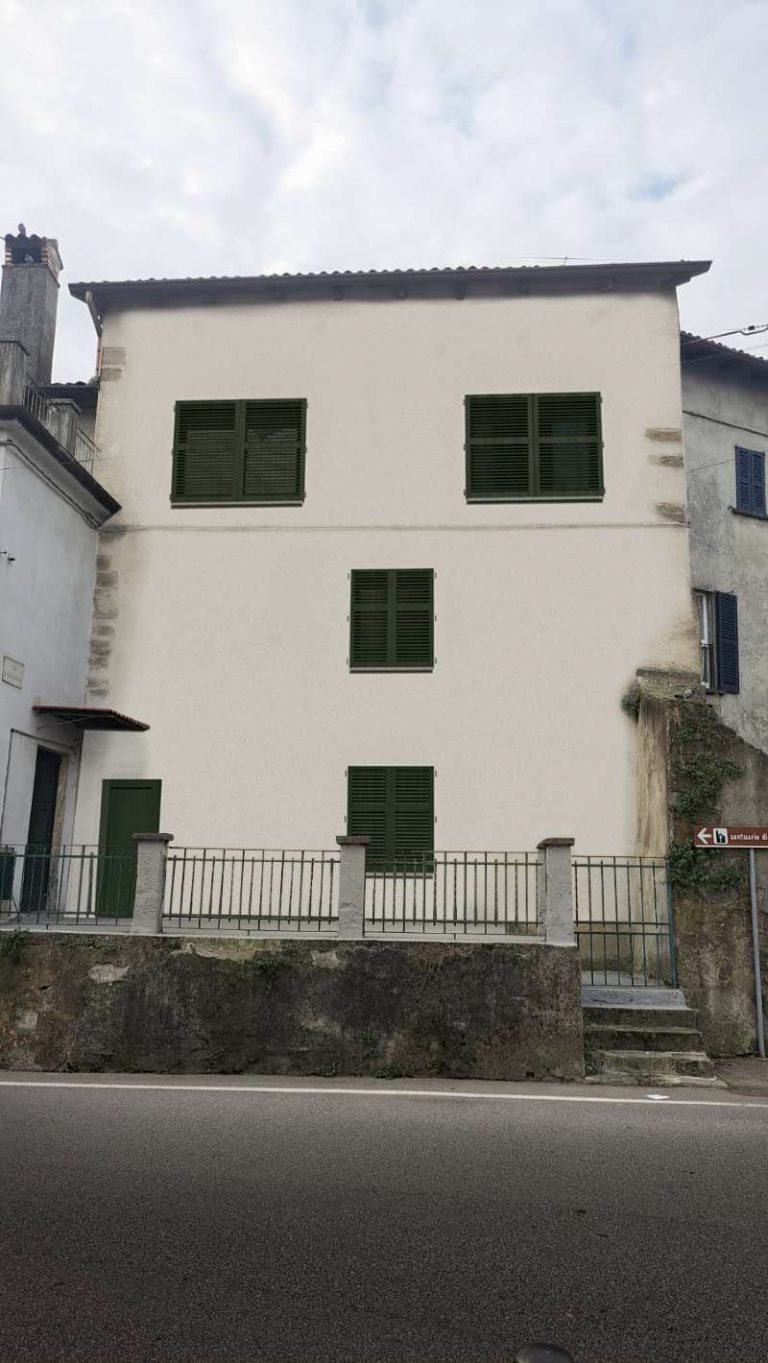 L’immobile si affaccia sulla strada che va verso il centro e dispone di un secondo accesso in corte tramite un portone in legno.