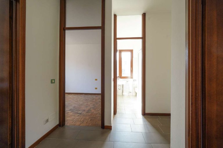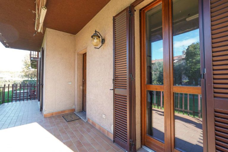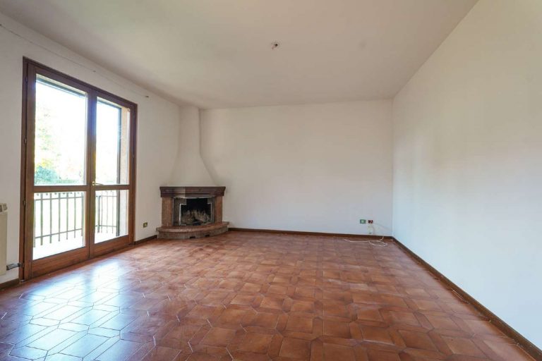 Tramite cancelletto indipendente si accede al terrazzo vivibile di 21 mq di proprietà dell’appartamento, ingresso nel soggiorno con camino, cucina abitabile, ampio disimpegno dove è possibile inserire uina armadiatura, camera matrimoniale con balcone, seconda camera, doppi servizi di cui uno con vasca e uno con doccia recentemente ristrutturato; completano la soluzione al piano interrato una cantina e una autorimessa con doppia basculante dove è possibile parcheggiare fino a quattro auto.
