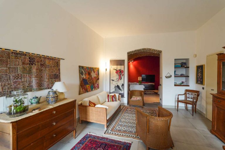 In una delle aree collinari più esclusive e riservate, ai piedi dei colli di San Vigilio, sorge questa raffinata porzione di cascina libera su tre lati e immersa in un ettaro di terreno alberato e con ampi terrazzamenti.