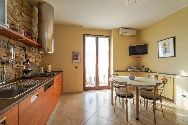 Ingresso su luminoso soggiorno con camino a pellet/legna, ambiente accogliente e perfetto per vivere momenti in famiglia. A seguire una cucina abitabile di generose dimensioni, una cameretta/studio versatile e un bagno di servizio.